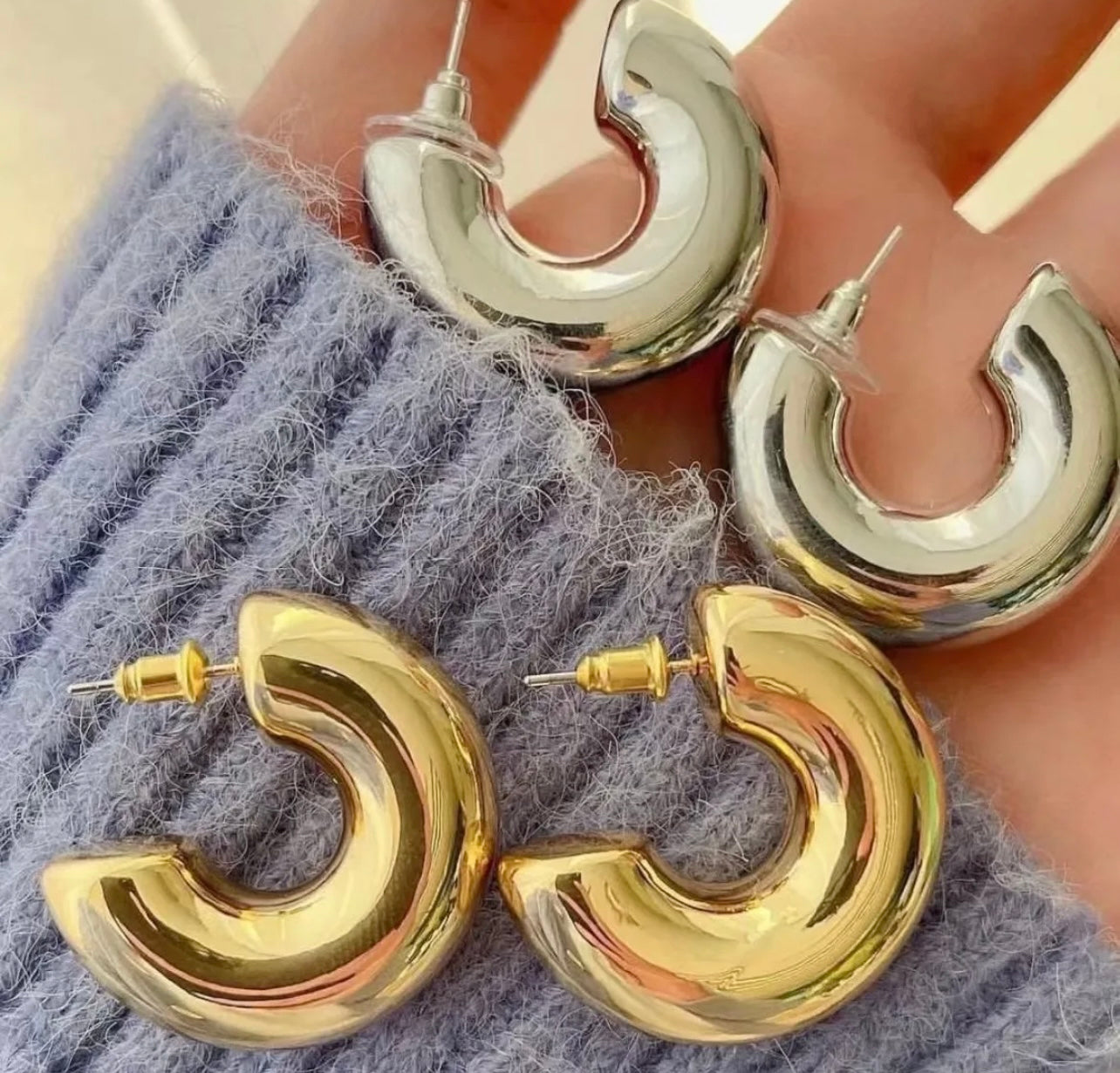 Argollas en forma de c doradas y plateadas